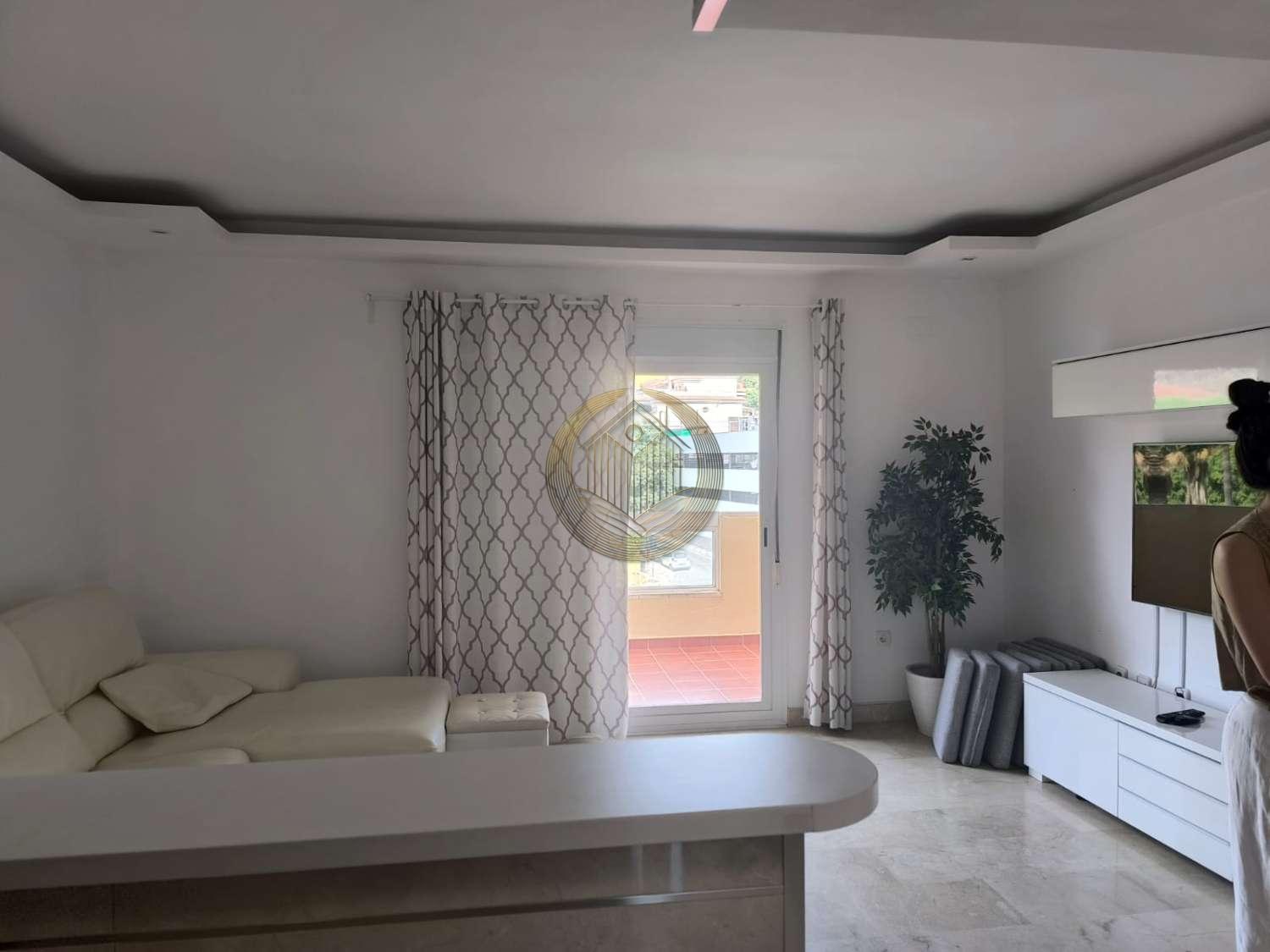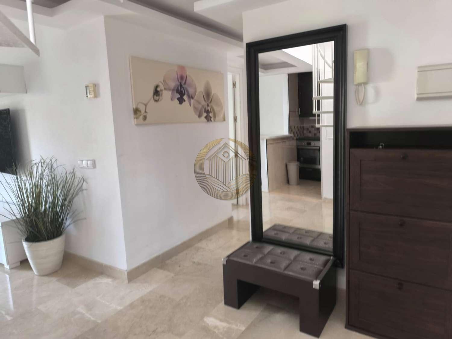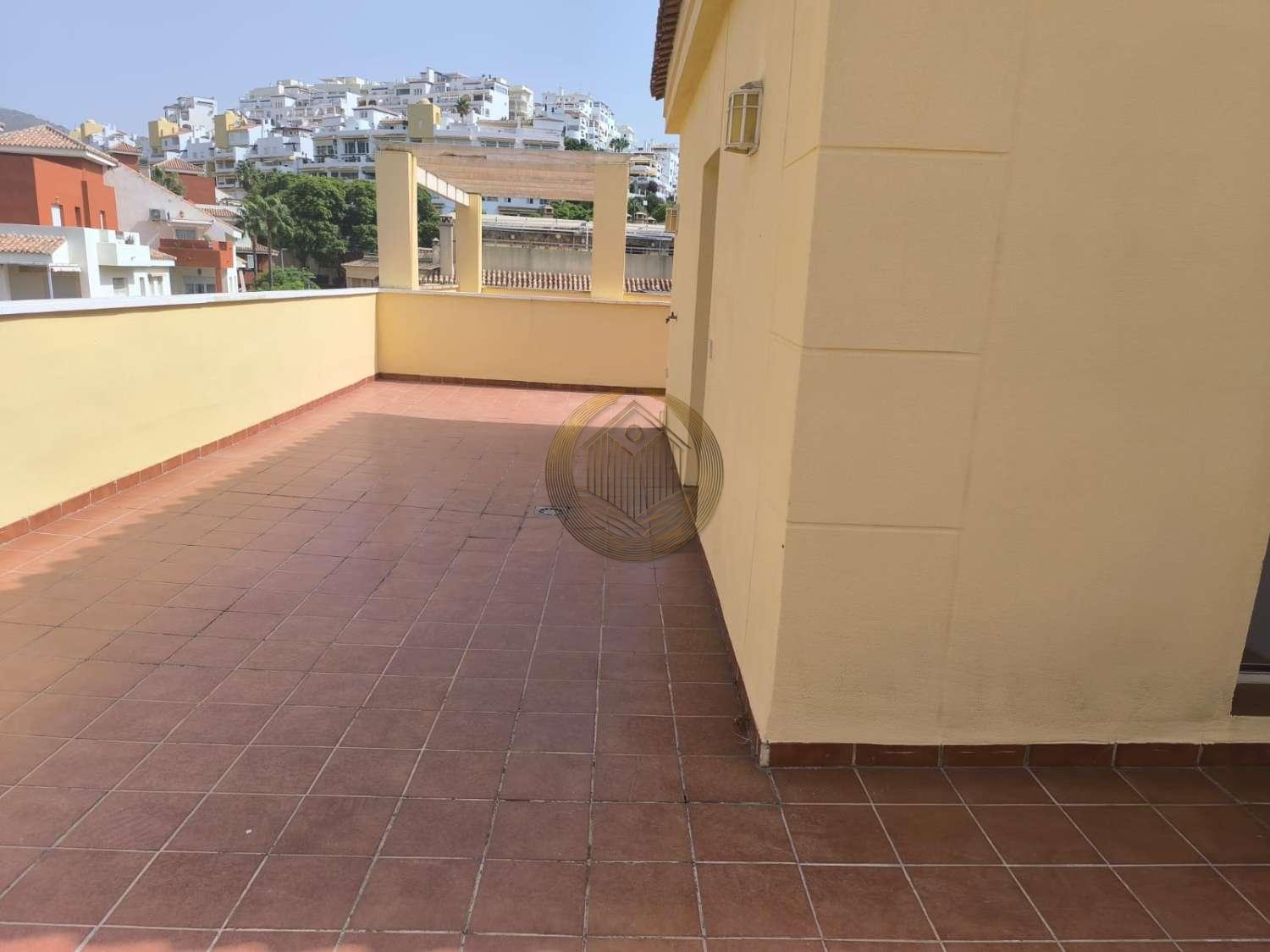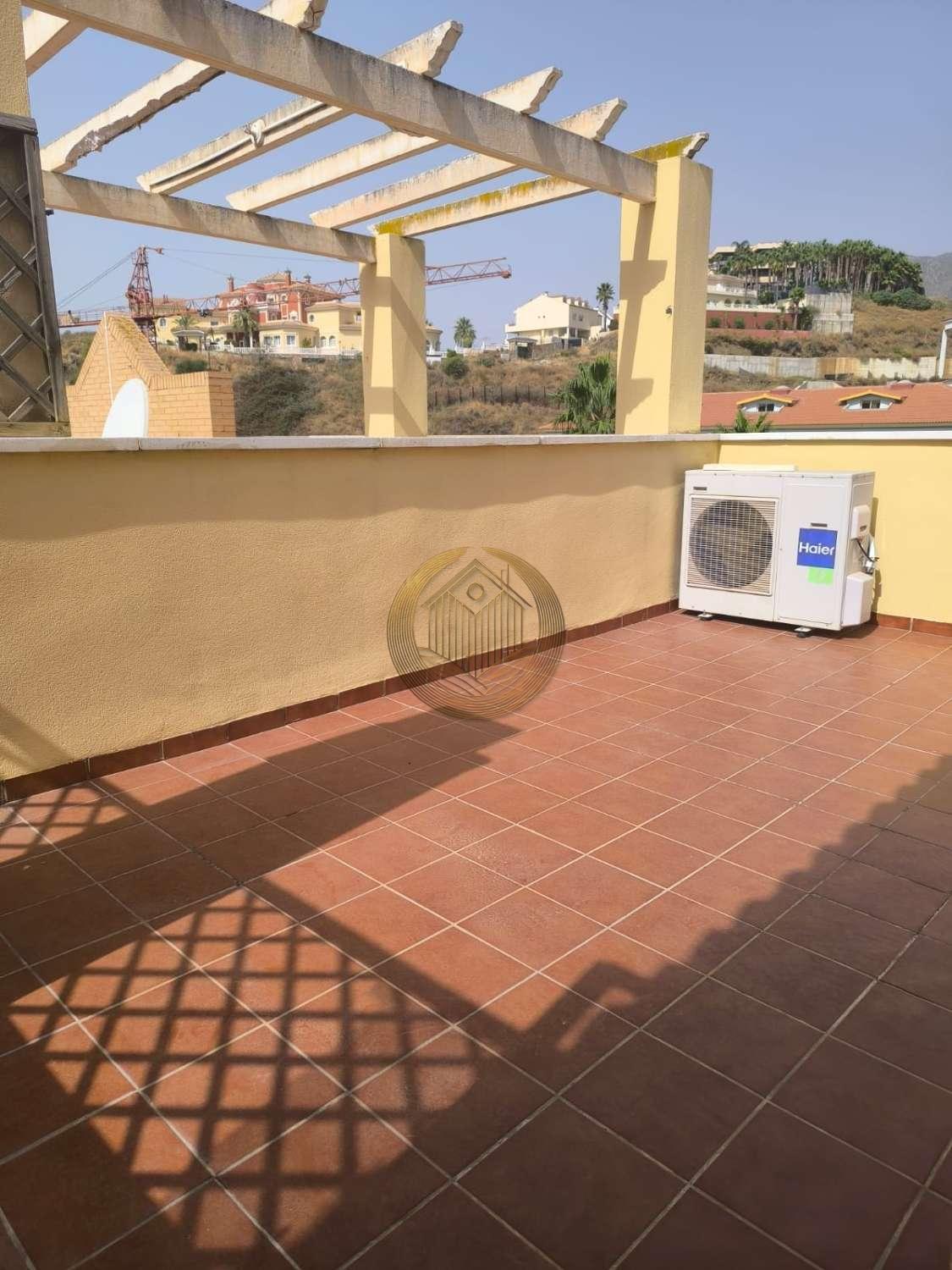 Disfruta de vivir en una zona privilegiada de Benalmádena, a tan solo 5 minutos a pie de la playa y con un Mercadona justo enfrente, lo que facilita tu día a día. La vivienda se distribuye en dos plantas. En la planta baja encontrarás 2 dormitorios con armarios empotrados, 2 baños completos, un amplio salón muy luminoso, cocina americana totalmente equipada con electrodomésticos de alta gama, y una terraza con vistas a la montaña. En la planta alta se encuentra un dormitorio adicional, ideal para oficina o habitación infantil, y una espectacular terraza con vistas panorámicas al mar y a la montaña. Esta casa es perfecta para quienes buscan comodidad, cercanía al mar y tener todos los servicios a la mano.