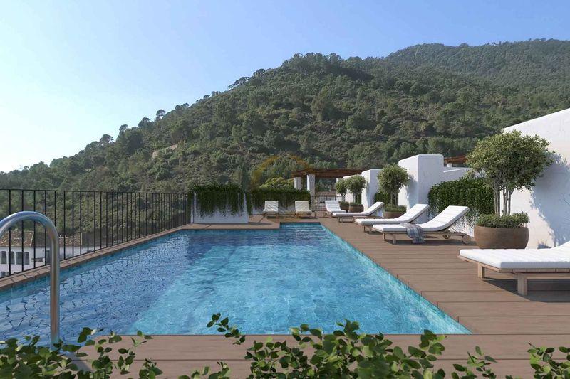 Es una exclusiva promoción de 28 apartamentos con plaza de garaje subterránea privada y piscina comunitaria en la azotea, ubicada en el corazón de Benahavís. Este singular residencial combina la arquitectura tradicional andaluza con las comodidades modernas, en un entorno natural privilegiado, rodeado de montañas y el río Guadalmina.
