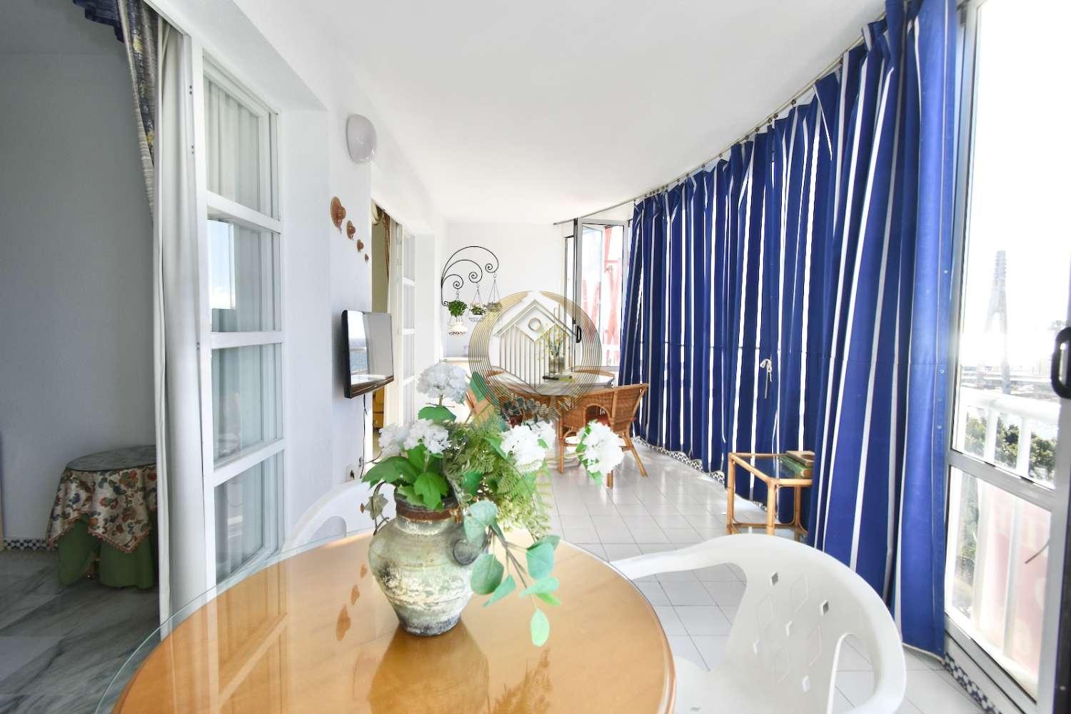 Piso de 134 m² se encuentra en una de las mejores zonas residenciales de Fuengirola, a pocos minutos de la Playa del Castillo y del centro de la ciudad. La propiedad cuenta con tres dormitorios dobles con armarios empotrados, dos baños completos (uno en suite), amplio salón y cocina independiente con barra americana, además de un práctico lavadero. La terraza semicircular, de 20 m², es completamente privada y ofrece vistas panorámicas espectaculares, con cierre abatible y toldo. La urbanización, de alta calidad, dispone de dos piscinas (una para adultos y otra infantil), amplias zonas ajardinadas, comunidad cerrada con cámaras de seguridad y vigilancia nocturna, y servicio de portería disponible todos los días de la semana. Además, cuenta con dos ascensores. Las vistas son impresionantes, con panorámicas al mar, al Castillo Sohail, al río Fuengirola canalizado y a la Sierra de Mijas. Gracias a su orientación privilegiada, la propiedad disfruta de una temperatura constante todo el año, sin problemas de humedad y con vistas despejadas que nunca se verán alteradas. Ubicada en una zona tranquila, sin ruidos ni comercios molestos, se encuentra a tan solo 5 minutos del centro comercial Miramar, 10 minutos a pie del centro de Fuengirola por el Paseo Marítimo y cerca de zonas recreativas y naturales.