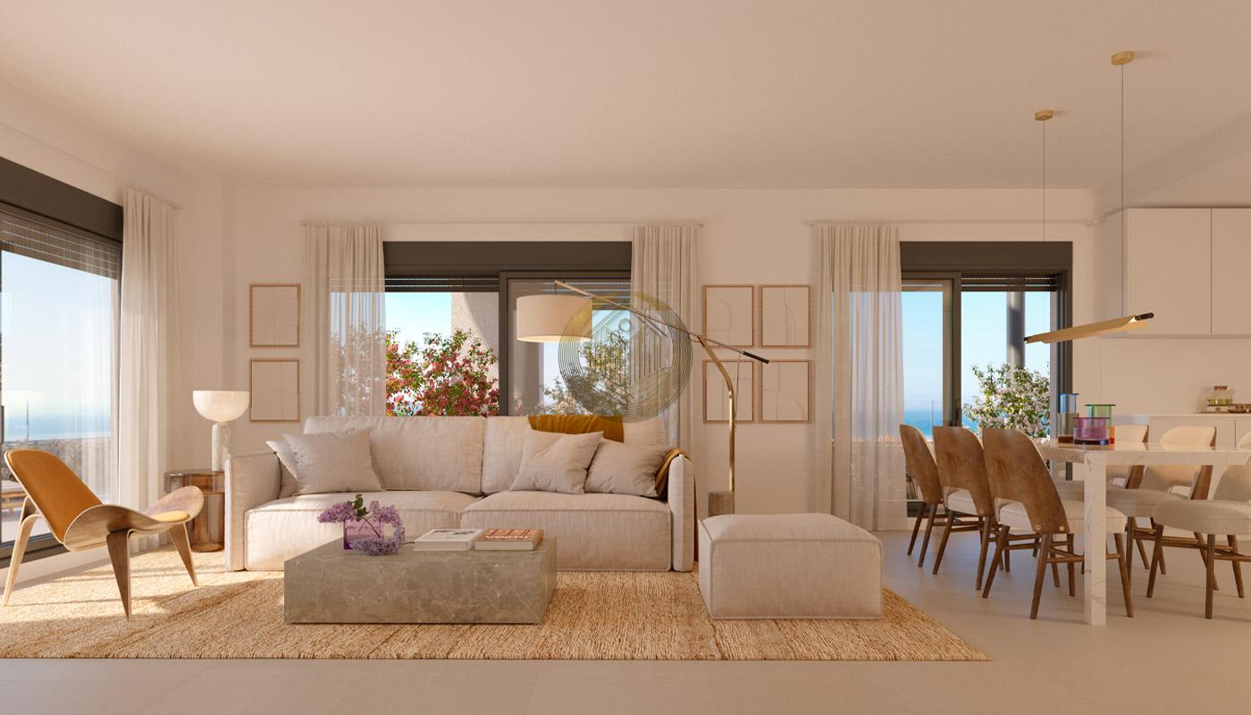 A la hora de diseñar este proyecto, los arquitectos priorizaron la versatilidad y adaptabilidad del mismo. Por un lado, se buscaba crear viviendas funcionales, amplias y capaces de brindar un confort óptimo durante todo el año, y por otro lado, era fundamental resaltar su ubicación y las excepcionales condiciones climáticas. El resultado es sobresaliente: un complejo residencial vanguardista y sofisticado que maximiza el uso de las áreas comunes y garantiza la privacidad del conjunto. Se ha concebido teniendo en cuenta el entorno privilegiado, con amplios ventanales que se abren al sol y la brisa del Mediterráneo, y terrazas que ofrecen una vista panorámica inigualable de la costa de Torremolinos. Con una variada tipología de 1, 2, 3 o 4 dormitorios, las viviendas se adaptan a tus necesidades. Ya sea una vivienda en altura, un ático o un bajo, todas disponen de generosos espacios al aire libre, ideales para relajarte y disfrutar momentos especiales con familia y amigos. Las viviendas destacan por su cuidada distribución, favoreciendo un uso social de las estancias principales y respetando la privacidad de las áreas más íntimas. Los salones cuentan con cocinas integradas y amplios accesos a las terrazas, creando una zona de encuentro que borra las fronteras entre el interior y el exterior. Las zonas comunes se rodean de un paisajismo cuidado, ofreciendo dos amplias piscinas exteriores y un gimnasio completo. Este equipamiento comunitario exclusivo se ubica estratégicamente para facilitar el acceso y simplificar los desplazamientos internos. Situado en una de las mejores zonas de Torremolinos, con un acceso excepcional a las principales vías de la provincia, este entorno tranquilo y consolidado te brinda todo lo que necesitas sin tener que desplazarte en coche. Cerca de colegios públicos, instalaciones deportivas, el Auditorio Municipal y supermercados, además de contar con una de las mejores playas de la Costa del Sol a solo 5 minutos en coche. El Aeropuerto de Málaga está a 10 minutos y Málaga capital, con su vibrante oferta cultural, gastronómica y de ocio, a solo un cuarto de hora. Si prefieres no conducir, tienes a tu disposición líneas de autobuses y la estación de tren de Cercanías a solo 15 minutos a pie.