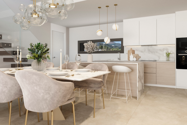 ¡Pronto se entregará el proyecto! Ubicado armoniosamente en las pintorescas colinas de Debenahavi, este hogar ofrece vistas panorámicas al mar Mediterráneo desde un impresionante balcón con vistas al mar. Desde este punto elevado, se puede disfrutar de una vista espectacular que abarca toda la costa y la bahía de Marbella, llegando hasta el Peñón de Gibraltar y África en el horizonte. El diseño interior de la vivienda se centra en el confort y la conveniencia. El dormitorio principal ofrece acceso directo a la terraza, permitiendo despertar cada día con las impresionantes vistas de la costa del Sol. Además, cuenta con un amplio vestidor que añade un toque de lujo y practicidad. La cocina, completamente equipada con muebles de diseño y electrodomésticos eficientes, está lista para ser personalizada según los gustos individuales, convirtiéndola en el corazón del hogar. La urbanización cerrada y vigilada ofrece una variedad de instalaciones para el disfrute y bienestar de sus residentes. Con tres piscinas disponibles, los residentes pueden elegir entre nadar al aire libre, relajarse en la piscina o disfrutar de un chapuzón en la piscina cubierta, adaptándose a sus preferencias en cualquier momento. Para aquellos interesados en mantenerse activos y saludables, el complejo cuenta con un gimnasio completamente equipado con máquinas modernas y un magnífico spa, ofreciendo el lugar perfecto para relajarse y rejuvenecer después de un día ocupado. El complejo también ofrece un área de colaboración, ideal para aquellos que necesitan trabajar o mantenerse conectados con sus proyectos en un entorno tranquilo y inspirador.