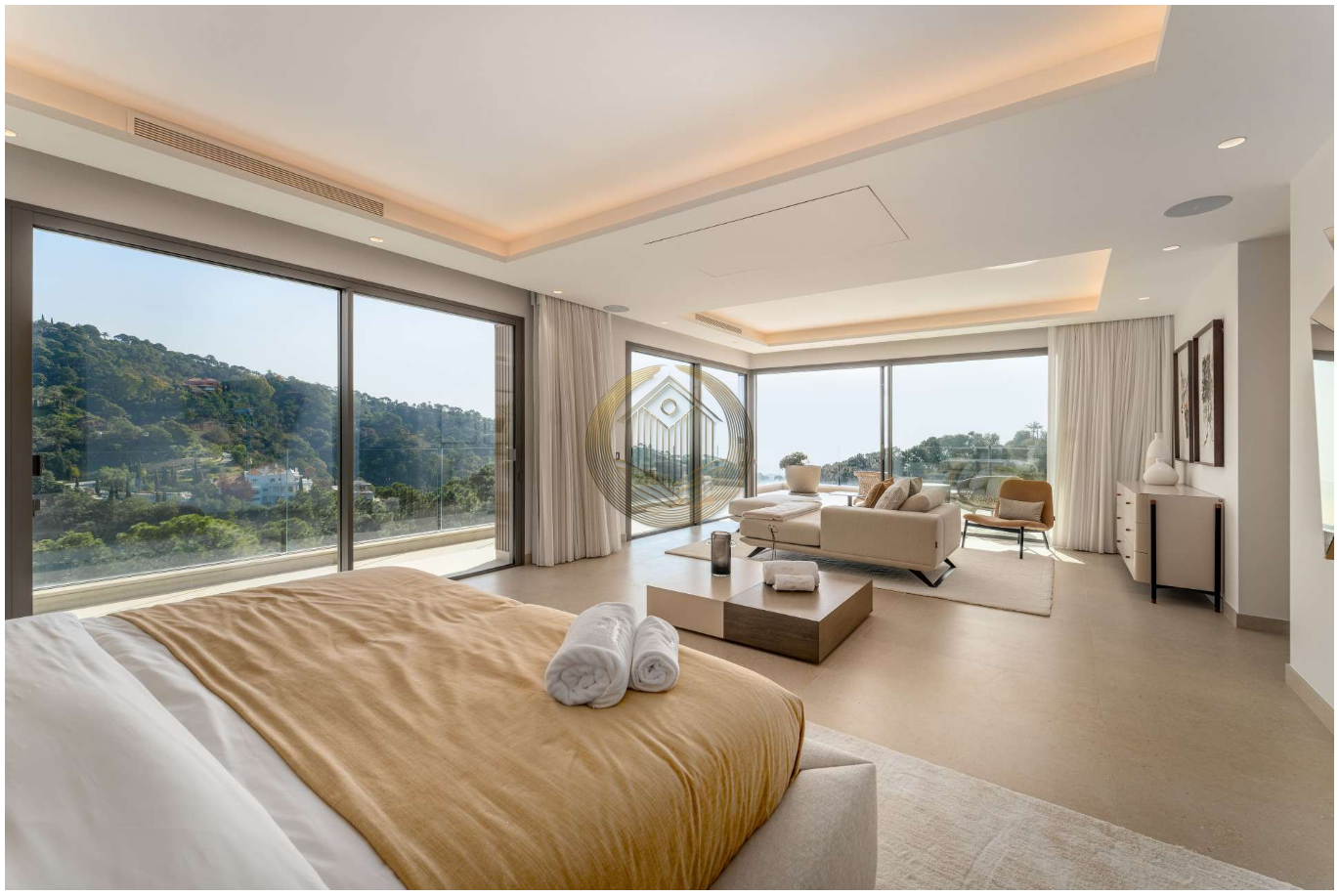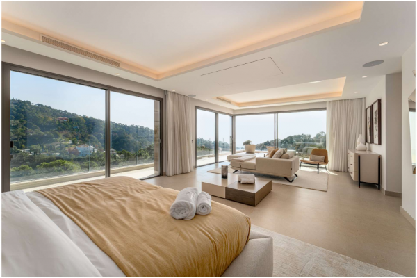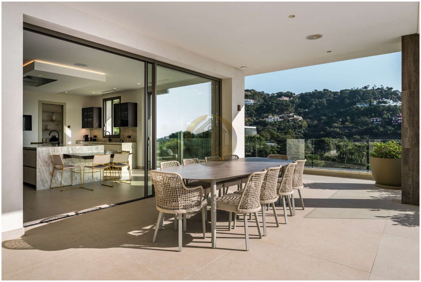 Esta impresionante villa contemporánea en Benahavis, en una de las urbanizaciones más exclusivas de Europa, ofrece privacidad absoluta, diseño de vanguardia y vistas panorámicas al mar, al valle y a las montañas desde todos sus niveles. Ubicada sobre una amplia parcela llana de 5.394 m², la propiedad cuenta con una superficie construida de 958 m² distribuidos en tres plantas más solárium.