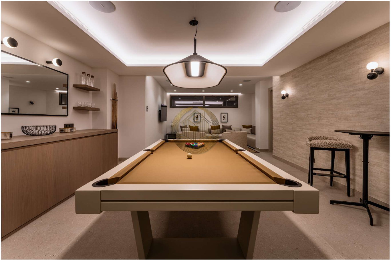 La planta inferior ofrece un lujoso espacio de bienestar con piscina interior climatizada, sauna, baño turco, gimnasio y vestuarios. También incluye un salón de entretenimiento con bar, mesa de billar y bodega climatizada. Un apartamento independiente para invitados o personal añade comodidad adicional.