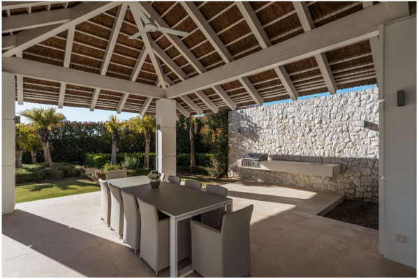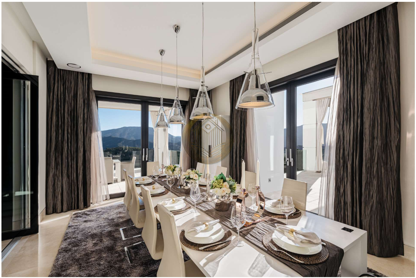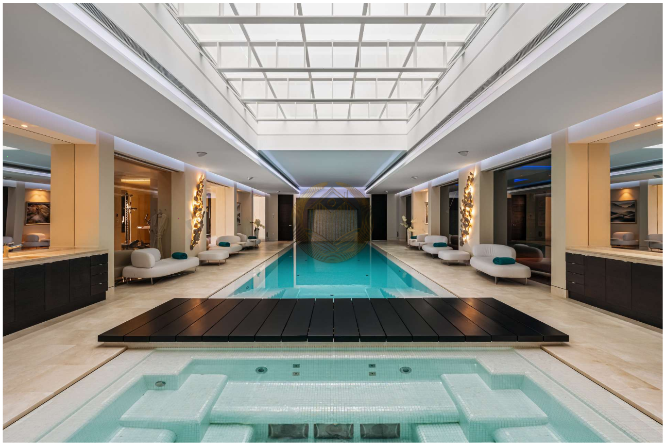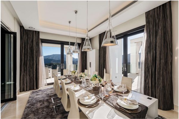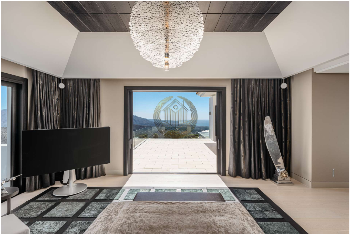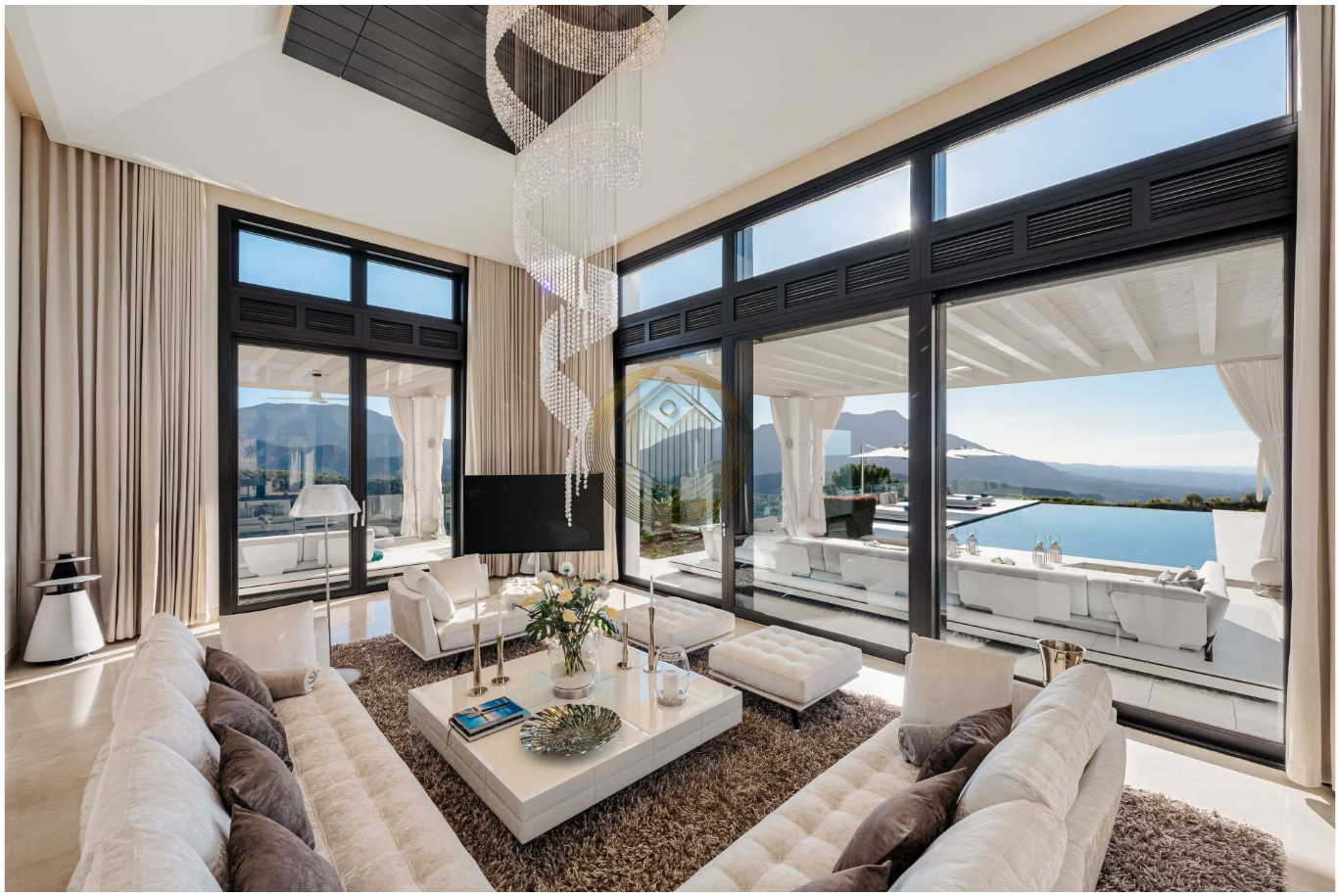 Con 1.700 m² de interiores y 400 m² de terrazas sobre una parcela privada de 4.650 m², la villa ofrece impresionantes vistas al mar Mediterráneo y a las montañas, además de una privacidad absoluta. Se entrega completamente amueblada con piezas de arte y mobiliario de lujo.
