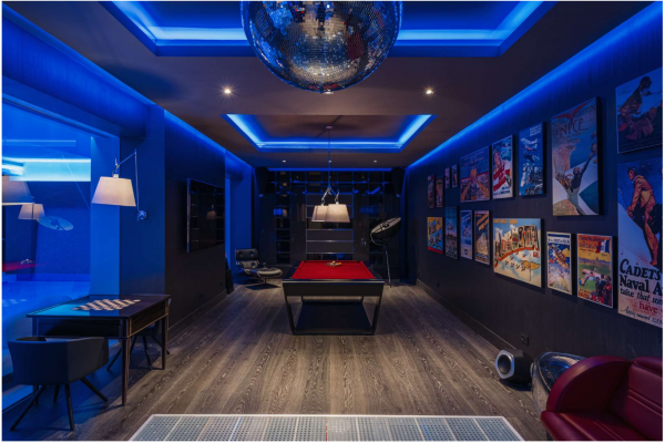 El nivel inferior acoge un completo espacio de entretenimiento: