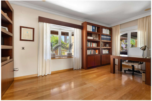 Cuenta con un apartamento independiente para invitados, amplio salón con chimenea, cocina con office y zona de servicio. La suite principal dispone de vestidor y terraza privada.