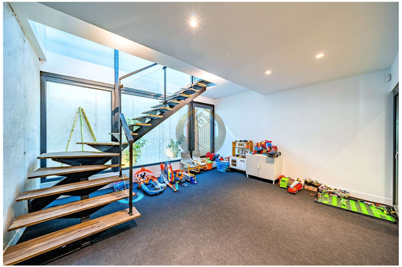 El amplio sótano es un espacio versátil que puede adaptarse a tus necesidades: sala de juegos, oficina, gimnasio o incluso un apartamento independiente. Incluye un baño completo, ofreciendo total comodidad.