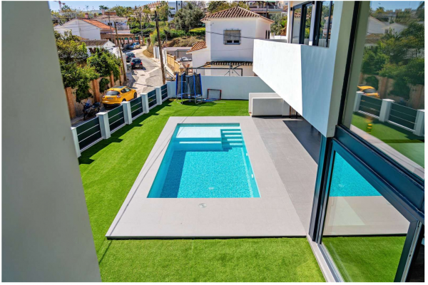 Situada a la entrada de Torremolinos, esta villa se encuentra a solo 5 minutos del Aeropuerto de Málaga y a 15 minutos a pie de la playa. Su entorno ofrece excelentes conexiones, así como acceso a restaurantes, comercios, centros comerciales y colegios, convirtiéndola en una opción ideal para familias.