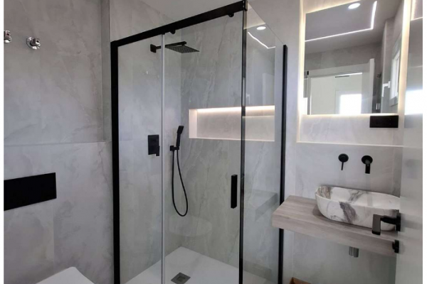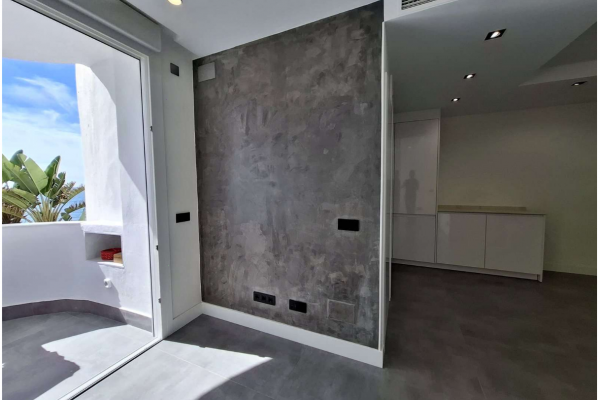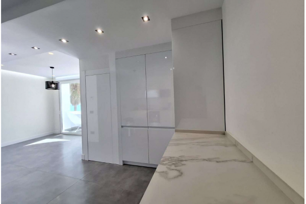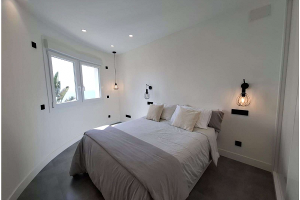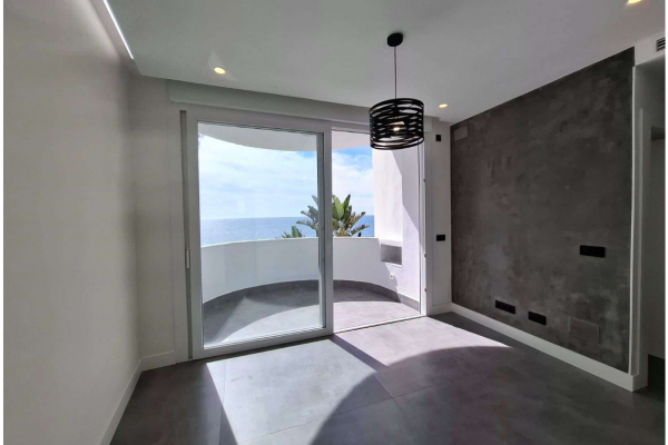 Olohuone erottuu suurista ikkunoistaan, joissa on kaksinkertaiset lämpölasit, jotka mahdollistavat runsaan luonnonvalon nauttimisen ja suoran pääsyn upealle terassille, josta avautuvat näkymät merelle.