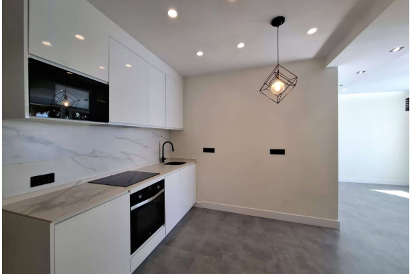 Asunto on jaettu tyylikkäästä eteishallista, jossa sijaitsee ensimmäinen vieraskylpyhuone, ja siinä on ulkoikkuna sekä lattialämmitys. Käytävä johtaa suureen suunnittelija-amerikkalaiseen keittiöön, joka on täysin remontoitu ja varustettu huippuluokan kodinkoneilla, integroituna valoisaan olohuoneeseen.